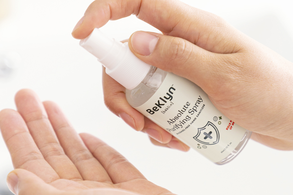 BeKlyn's Absolute Purifying Hand Spray is a powerful disinfectant spray made to defend against harmful organisms using a one of a kind TiO2 multi-photocatalysis. It is a convenient solution that sanitizes and deodorizes without the use of alcohol for a worry-free companion free of toxic chemicals and pollutants.